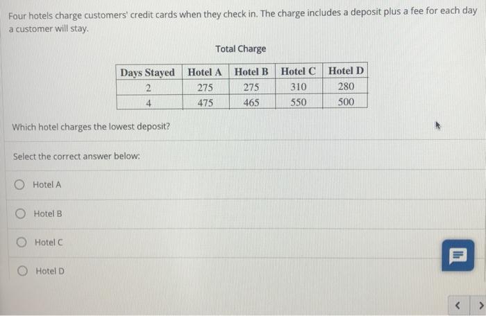 Solved Four Hotels Charge Customers Credit Cards When They Chegg Com